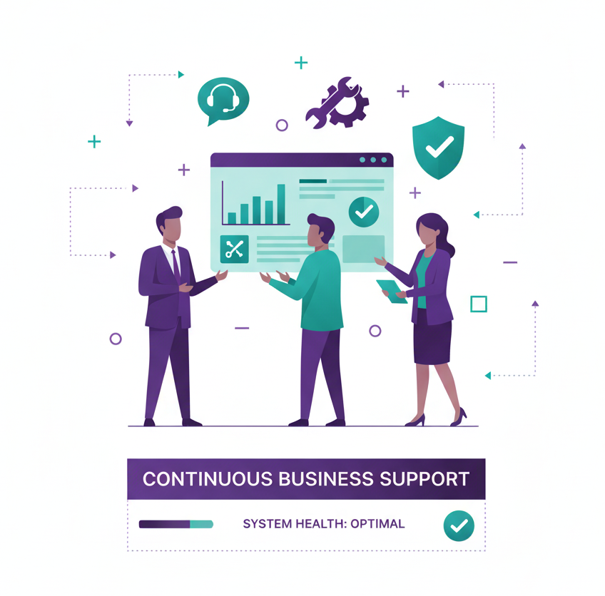 A well-implemented Odoo system is powerful, but it needs ongoing care to stay secure, efficient, and aligned with your business needs. Our Support & Maintenance services ensure your Odoo platform continues to deliver value every day.